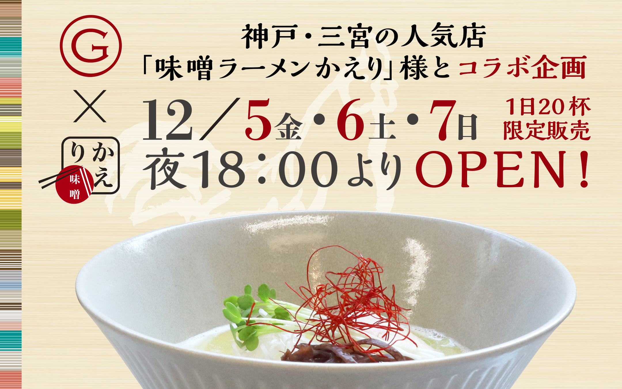 このたび、神戸・三宮の人気店「味噌ラーメン かえり」さんとのコラボ企画 が決定しました…!